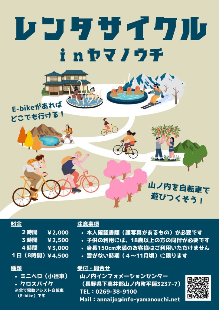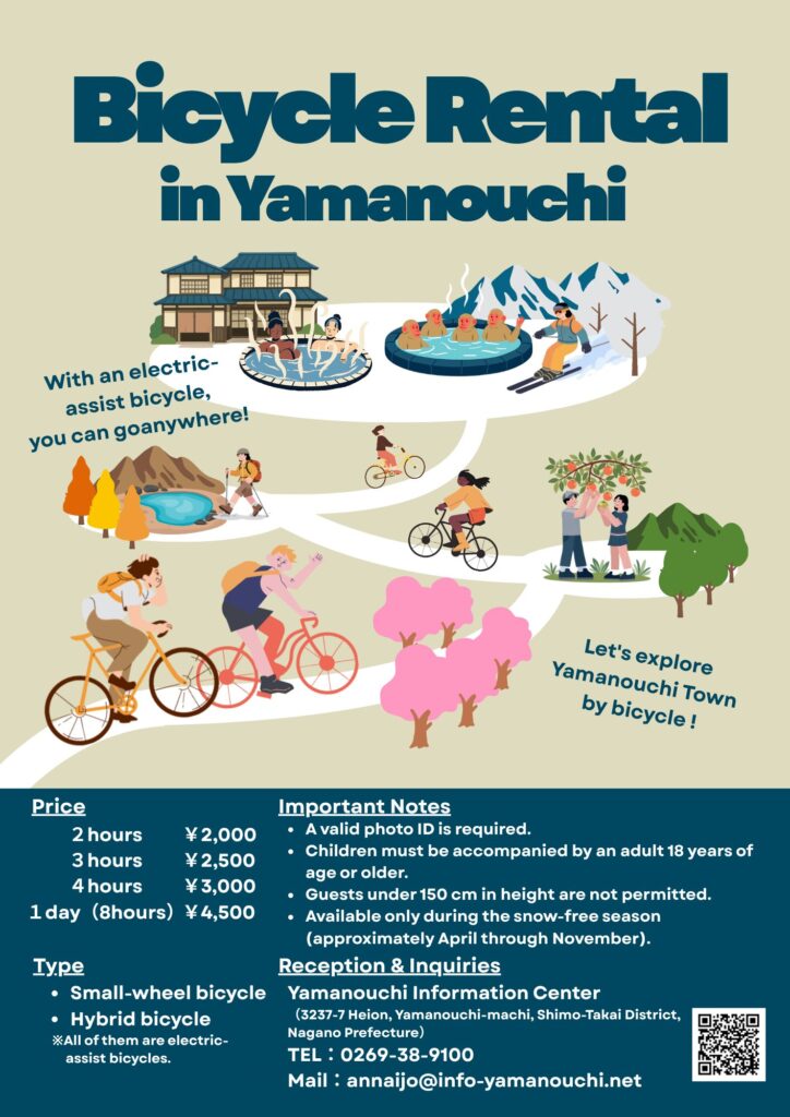 Electric bicycles are now available for rent at the Yamanouchi Information Center🚴